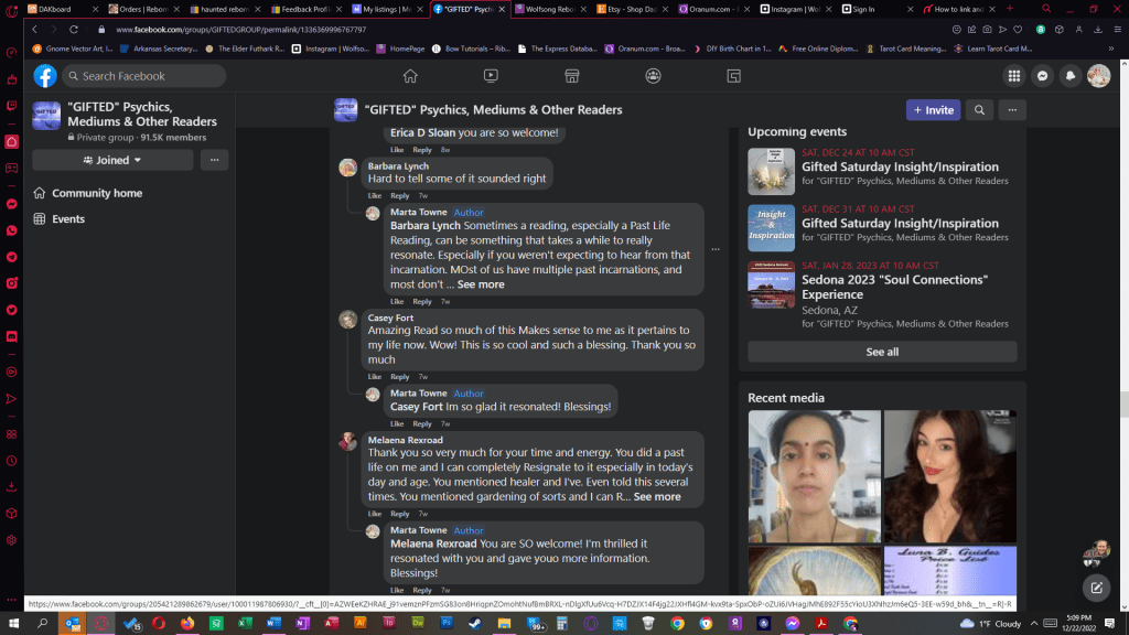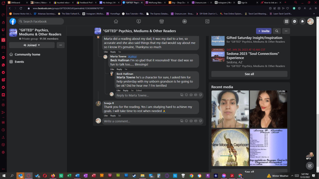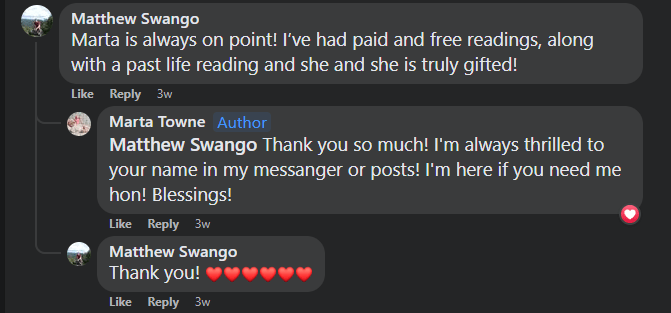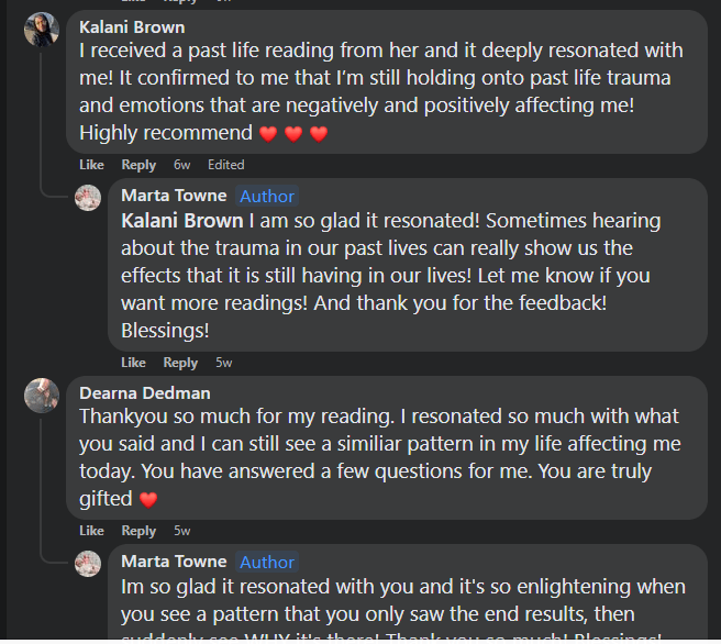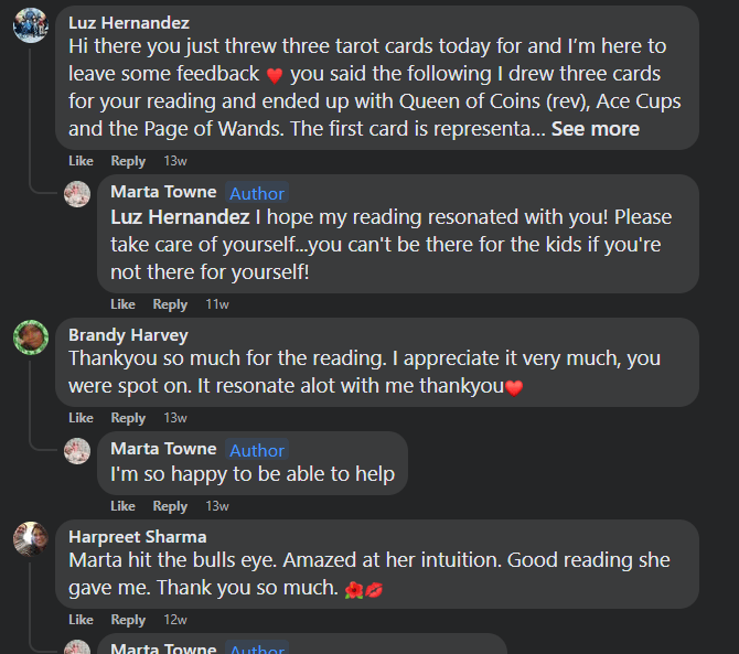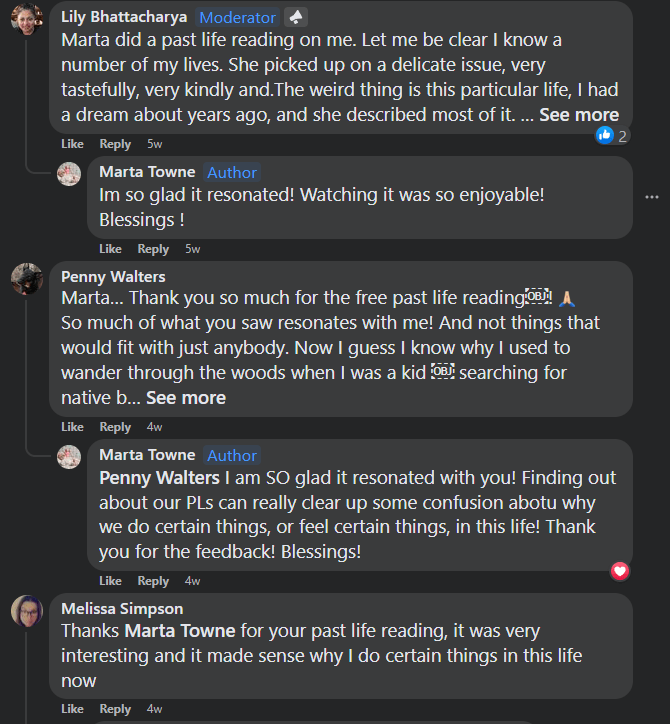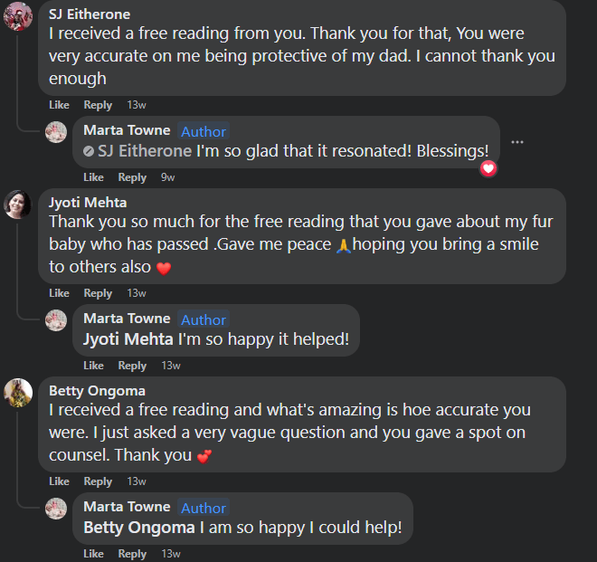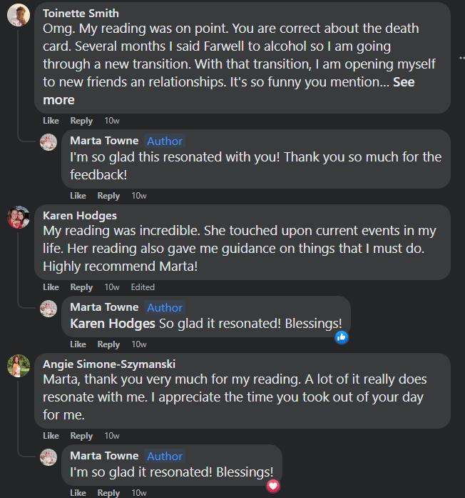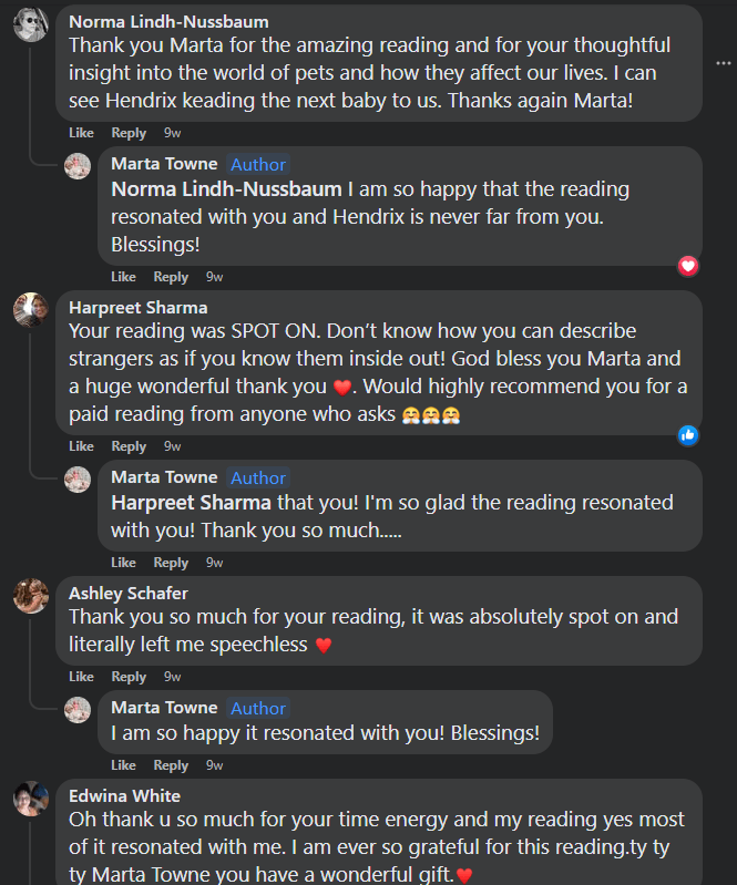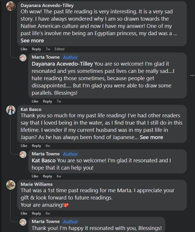 Feedback….. Concerned if we’re the “real deal”? I get that….so please take a look at these screenshots of our feedback…… If you’re intersted in joining the public groups we use to give readings and reach out to people, just message me!